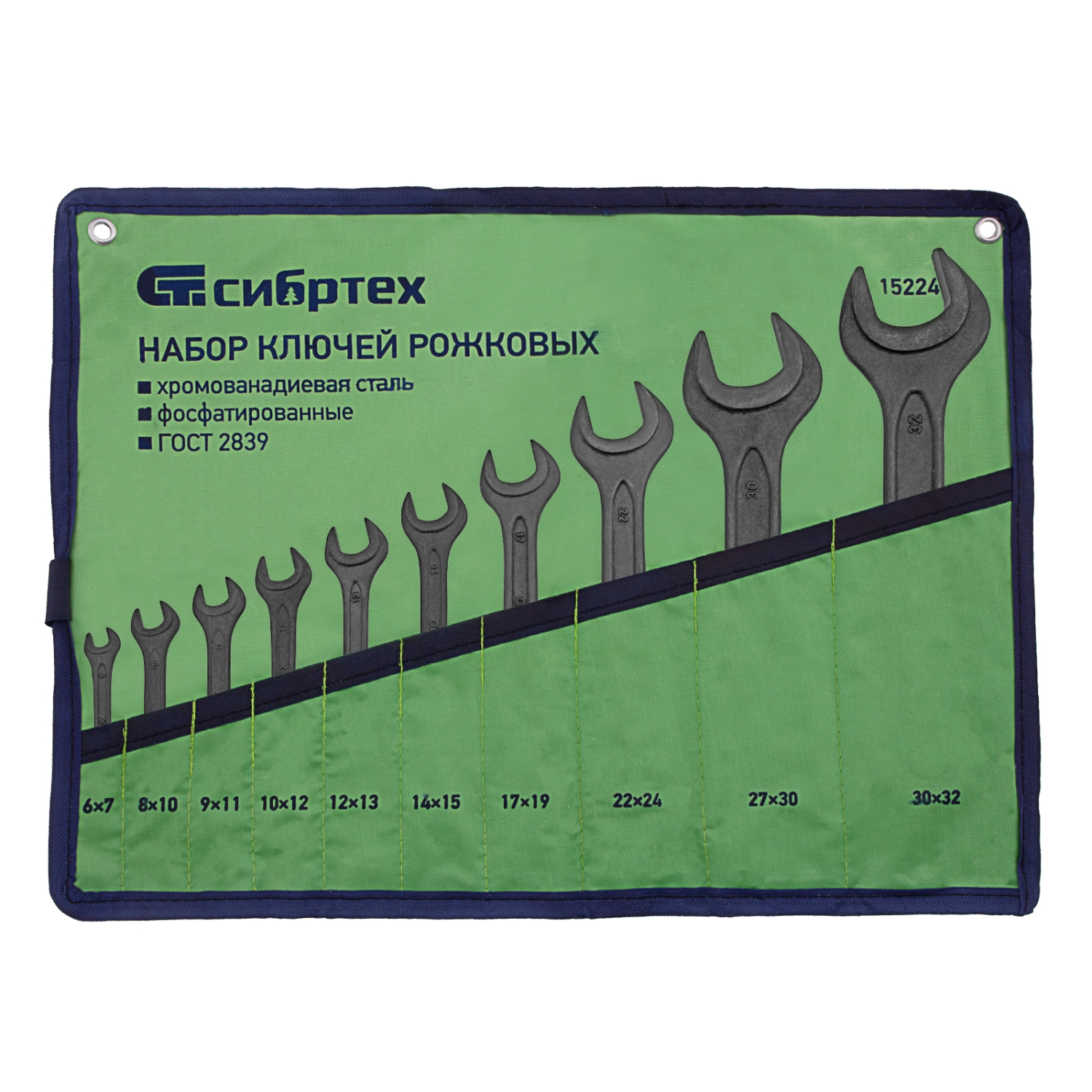 Набор ключей рожковых 6-32 мм 10 шт CrV фосфатированные Сибртех