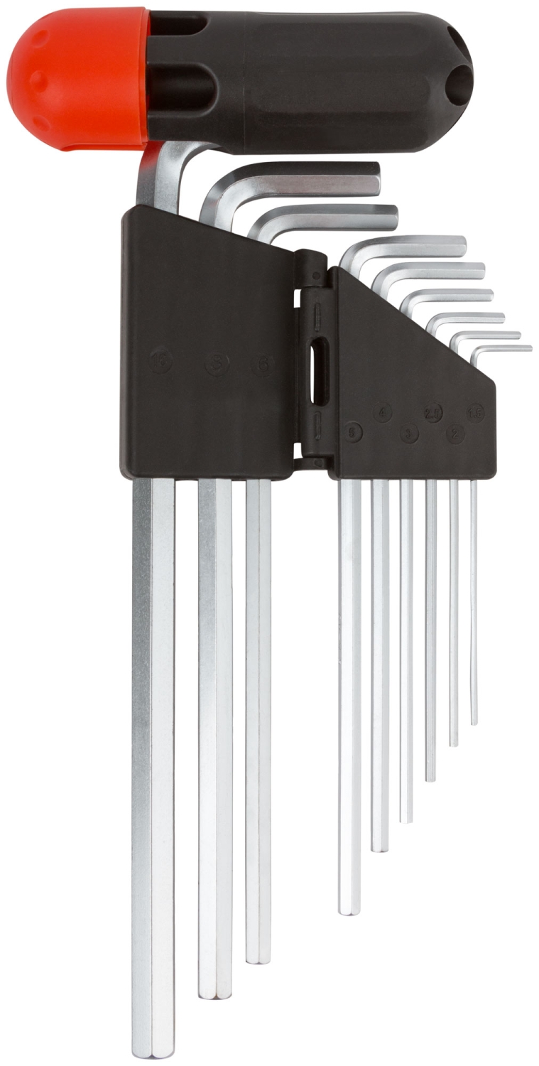 Набор ключей шестигранных длинных 9 шт 1,5-10 мм CrV с пласт. Т-обр. ручкой