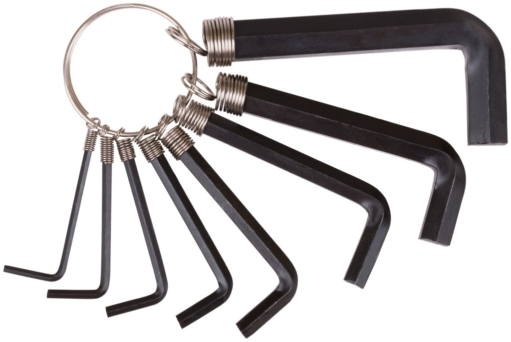 Набор коротких ключей на кольце. Материал:;термообработанная инструментальная сталь. Упаковка: п/э пакет с картонным подвесом.