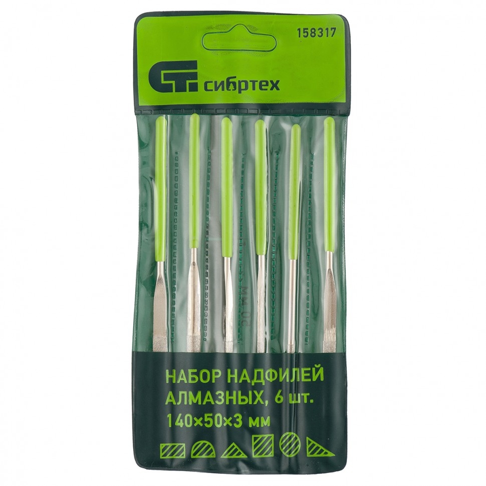 | Набор надфилей алмазных 140х70х3 мм 6шт. Сибртех | 158347 | 1 шт. |