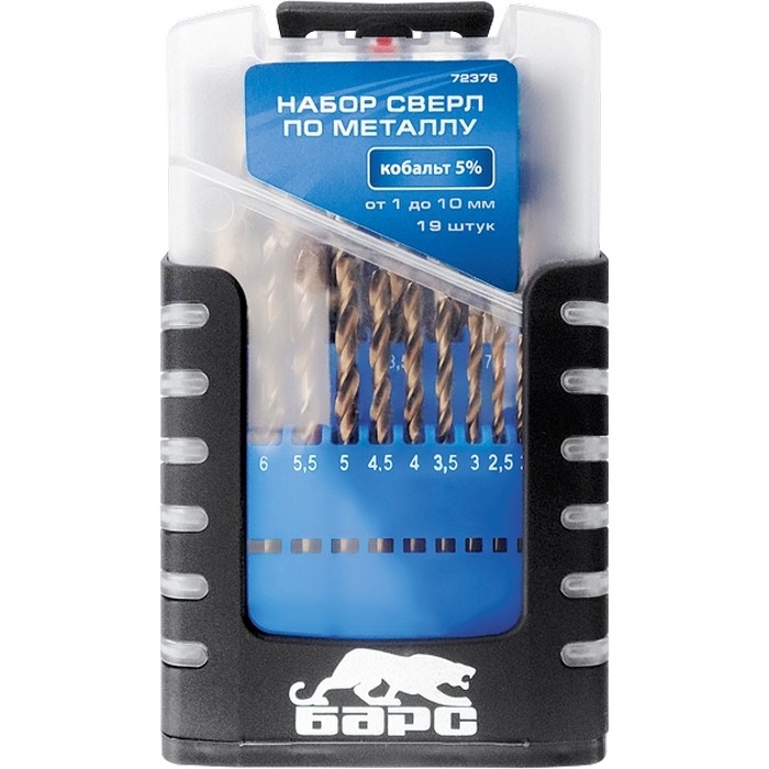 Набор сверл по металлу 1-10 мм (через 0.5 мм) 19 шт Р6М5. вышлиф. цилиндр.хвостовик бокс. Барс