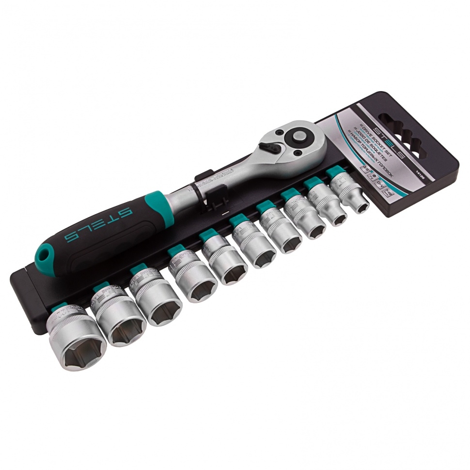 Набор торцевых головок с трещоточный ключом 11 шт 3/8 7-22мм Stels