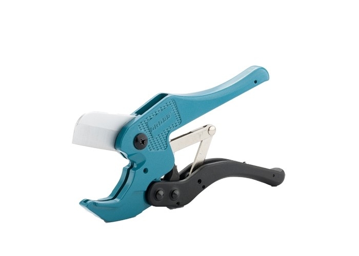 Универсальные ножницы для резки изделий из ПВХ Gross 78424 с порошковым покрытием рукояток применяются для разрезания пластиковых труб диаметром до 42 мм, а также профилей, плинтусов, галтелей, реек, планок, резиновых шлангов и других предметов. Нож у инструмента прямой, поэтому он может резать плоские заготовки. Ножницы пригодятся для выполнения сантехнических и отделочных работ. Преимущества Режущее полотно устойчиво к износу, т.к. изготовлено из высокопрочной японской стали SK-2. Инструмент не подвержен коррозии, поскольку его лезвие хромировано, а корпус защищен порошковым покрытием. Работа с ножницами долго не вызывает усталости благодаря модернизированному храповому механизму. Ножницы удобны в хранении и транспортировке за счет блокировки рукояток в сведенном положении.