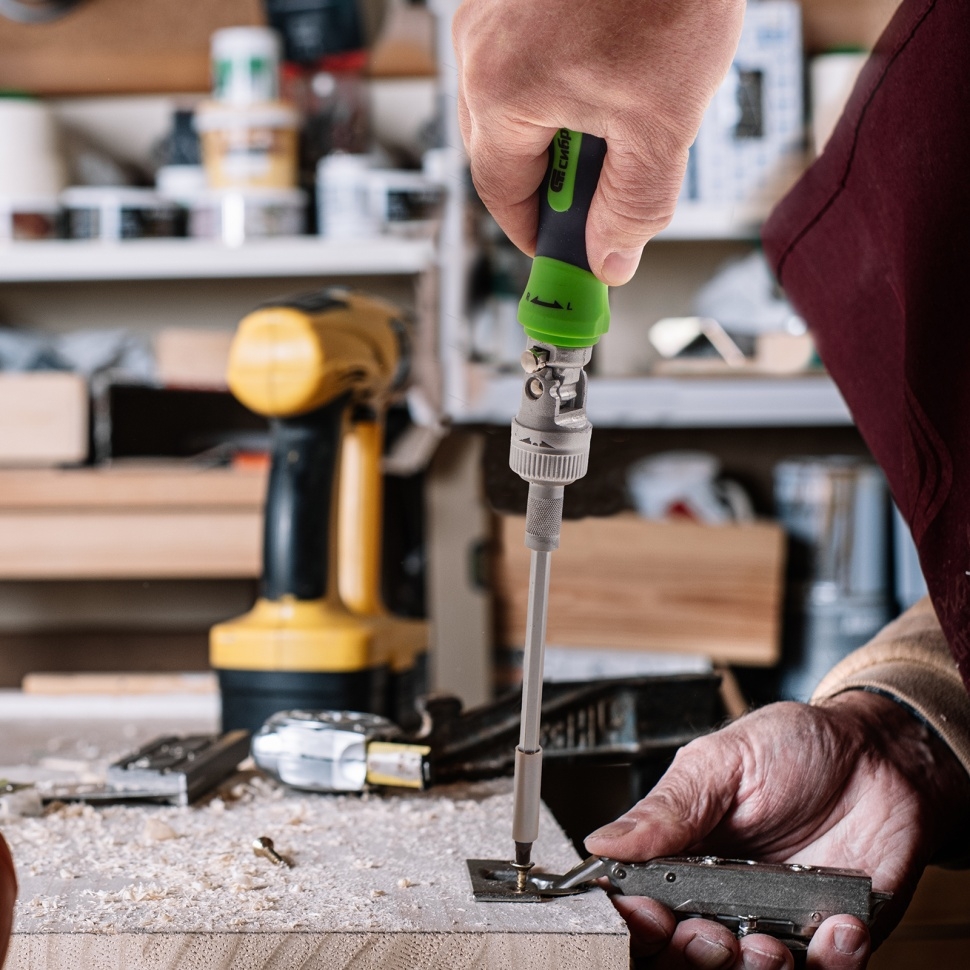 Отвертки риверсивные с набором бит 61 предмет CrV Сибртех
