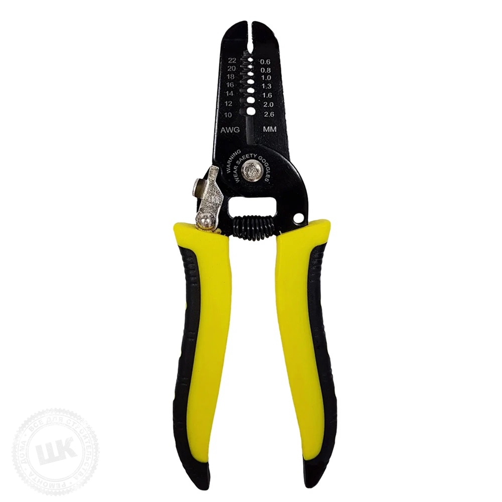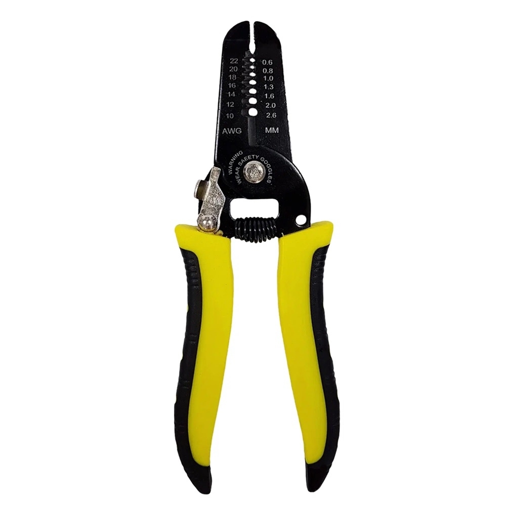 Стриппер для зачистки проводов VERTEX 0035-01 снабжен несколькими пазами для зачистки кабелей различного диаметра. Острые кромки пазов на губках инструмента обеспечивают быстрое и качественное снятие изоляции. В конструкцию инструмента включено приспособление для резки проводов. Нескользящие двухкомпонентные рукоятки оборудованы вставками из мягкой термопластрезины. Применение: снятие внешней оболочки кабеля и изоляции одножильных и многожильных проводников; зажим, обработка и обрезка кабеля, стальных и медных проводников; обжим кабельных наконечников и клемм; формирование монтажных петель.