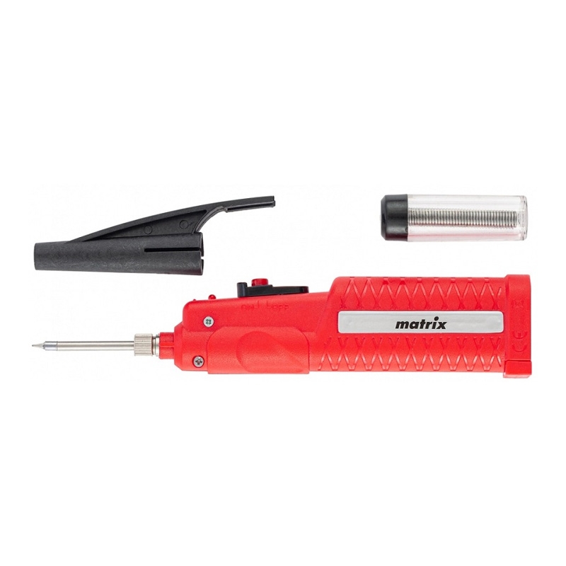 Паяльник беспров. 4,5 В 8 Вт 350*С припой 10 гр работа от эл.пит. 3хАА, Matrix предназначен для работы в местах где отсутствует возможность подключиться к сети 220 В.