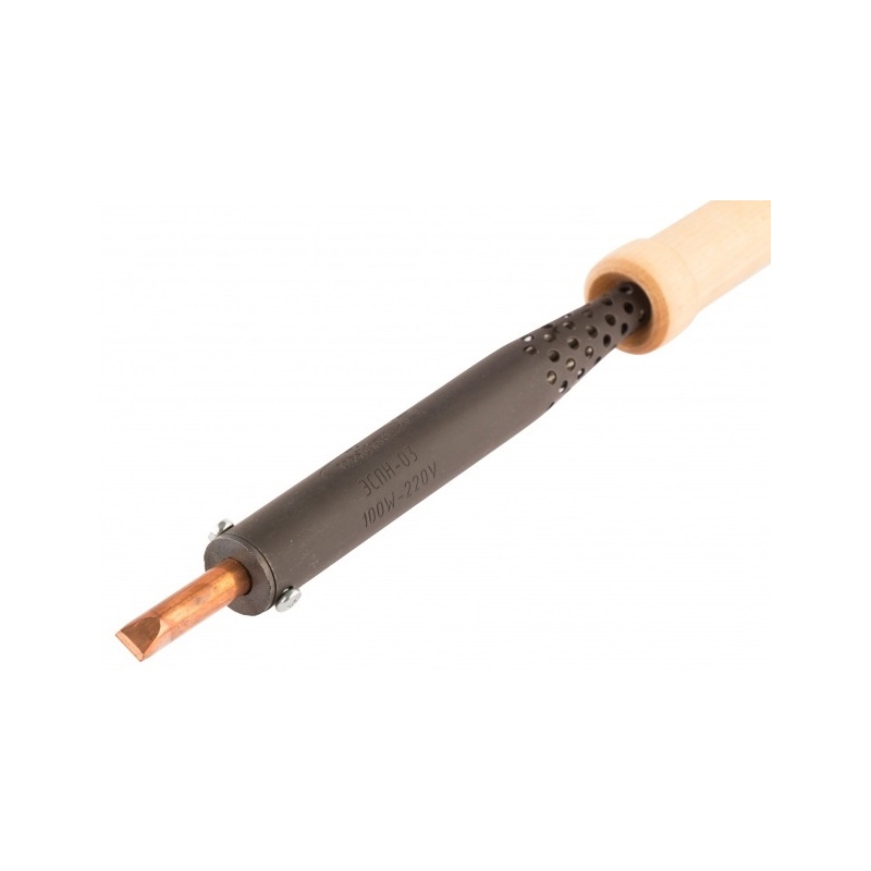 Паяльник электрический ЭПCН-03-100/220 с деревянной рукояткой, Сибртех предназначен для проведения электромонтажных работ, для пайки электрокомпонентов, проводов, мелких металлических и пластиковых деталей, радиосхем, ремонта бытовой техники.
