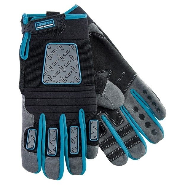Универсальные комбинированные перчатки Gross DELUXE 90335 размера XXL защищают руки от механических воздействий и образования мозолей. Анатомически скроенные перчатки плотно облегают кисти рук и не сковывают движения. Силиконовые накладки на внутренней стороне пальцев препятствуют выскальзыванию инструментов и снаряжения из рук. Перчатки пригодятся при работе с ручным и электрическим инструментом, занятиях мото- и велоспортом, а также при участии в спортивных высокотравматичных играх. Износостойкость — благодаря прокладкам на пальцах и формованной накладке на ладонной части перчатки защищены от протирания. Возможность использования в холодный период — на внешней стороне пальцев находится резиновое покрытие, обеспечивающее термическую защиту. Надежная фиксация — манжеты снабжены лентами-застежками velcro, благодаря которым изделия не сползают с кистей рук.