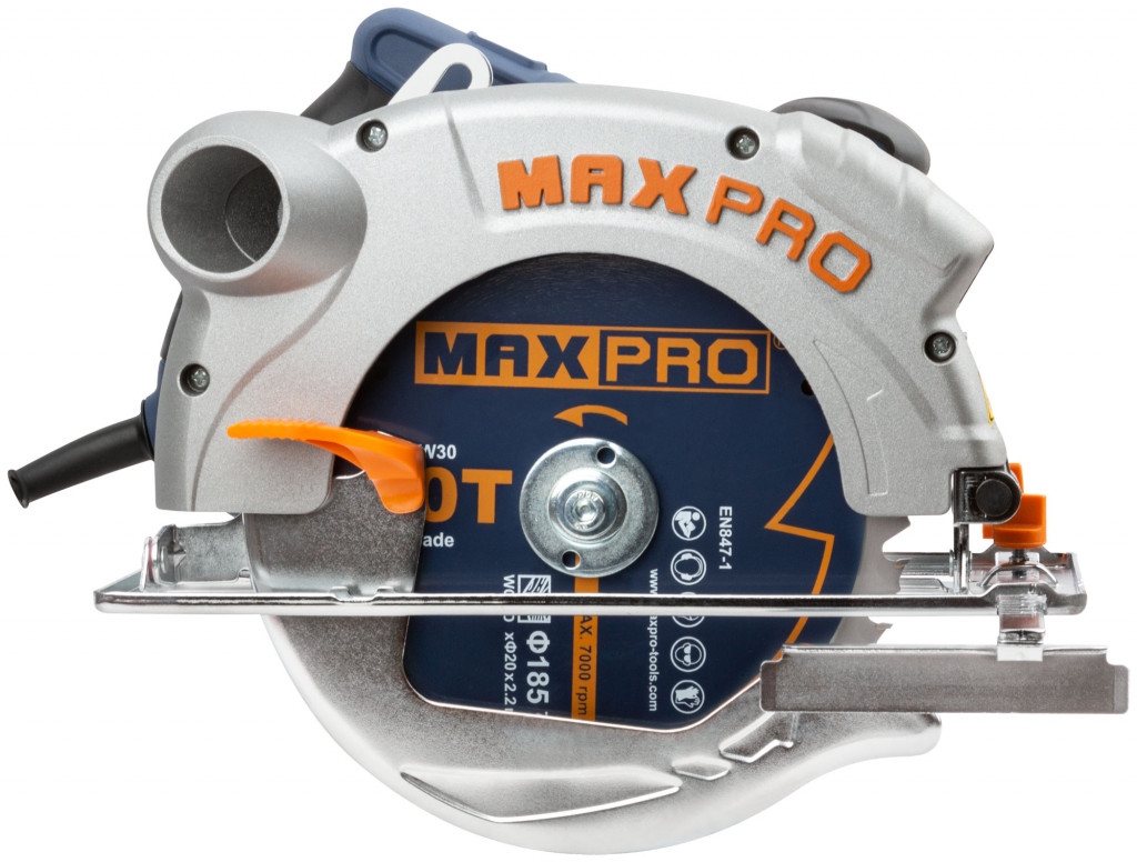 Пила циркулярная 1300 Вт; диск 185/20 мм; 4700 об./мин; максимальная глубина пропила 65 мм; лазер; резиновый кабель; 3,9 кг; коробка. Циркулярная пила MAX-PRO 85193 находит применение при ремонтных, монтажных и строительных работах. Ее можно использовать для пиления деревянных заготовок. Число оборотов достигает 4700 в минуту. Наличие лазерной направляющей повышает точность пропила. Патрубок пылеудаления помогает поддерживать чистоту на рабочем месте. Возможность подключения пылесоса Лазер облегчает и ускоряет выполнение задачи. Мощный двигатель для высокой производительности Дополнительная рукоять обрезинена для надежного хвата Резиновый кабель защищен от повреждений и заломов Верхний и нижний защитные кожухи для безопасности при транспортировке MAX-PRO 85193
