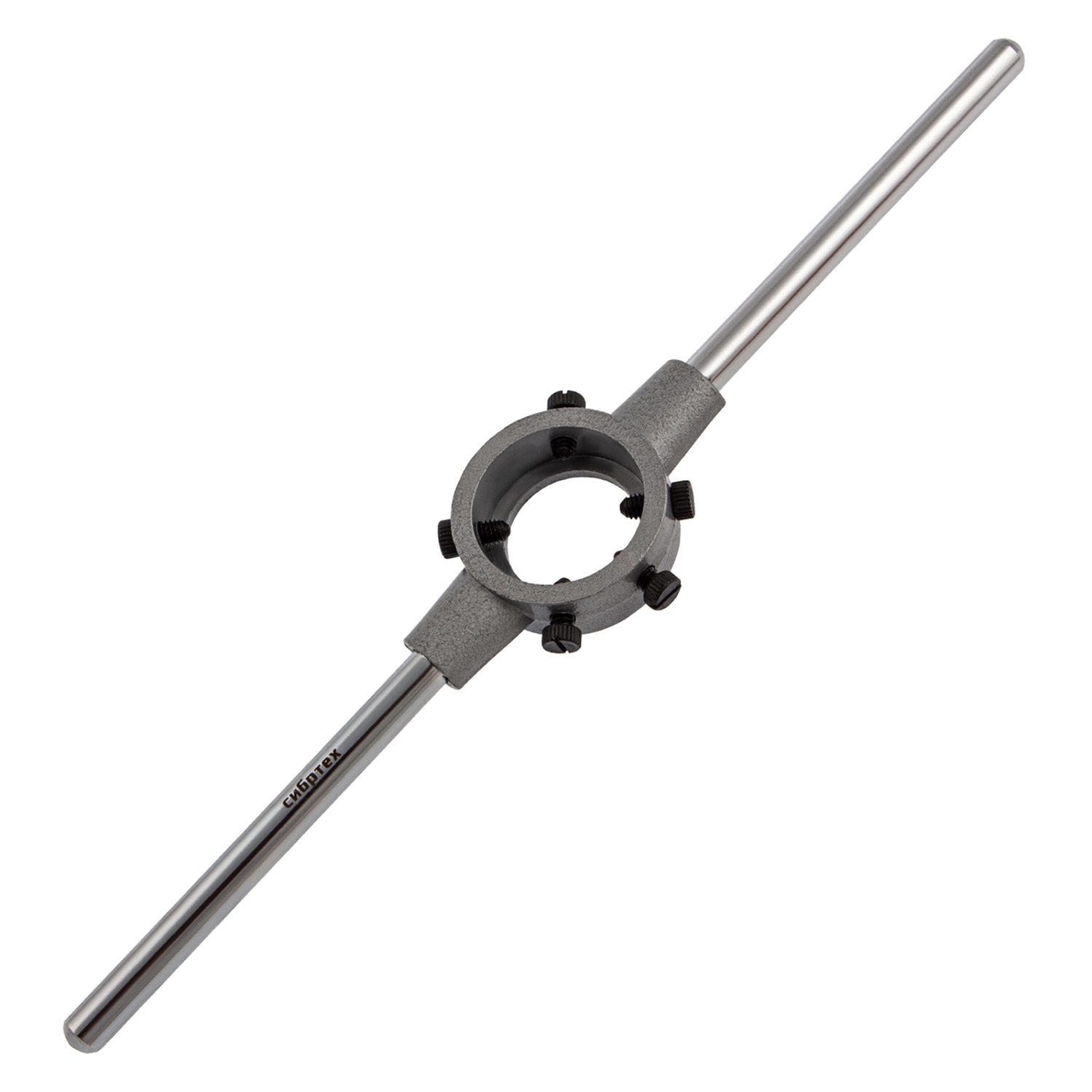 Плашкодержатель изготовлен из инструментальной стали высокого качества, что делает его надежным и долговечным инструментом.