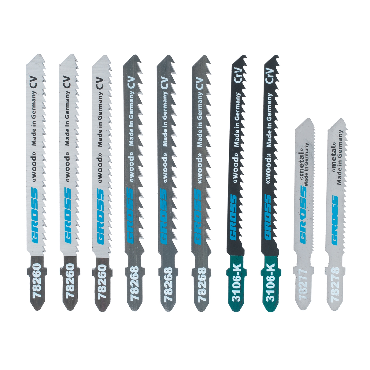 Высокая твердость и износостойкость — все полотна в наборе выполнены из немецкой хромованадиевой стали.