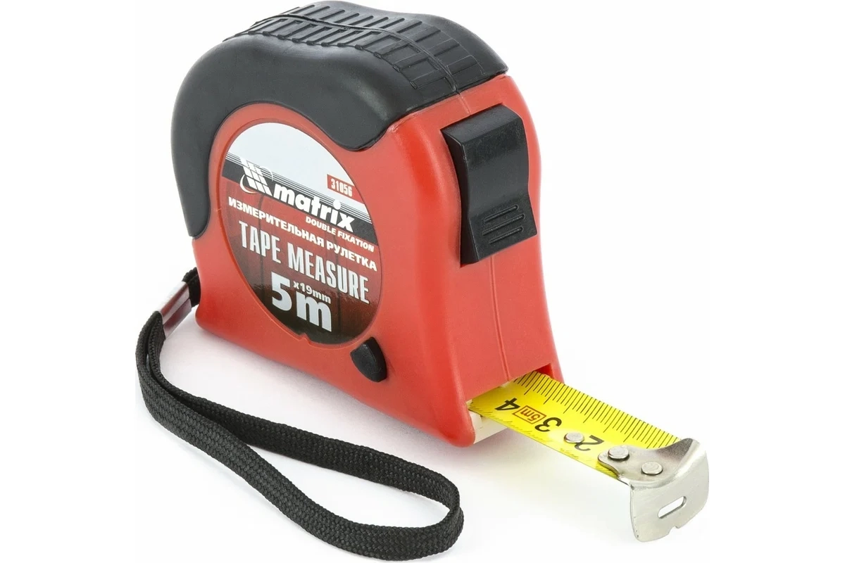 Рулетка Double fixation 5м х 19мм. обрезинен.корп., двойная плавная фикс Matrix