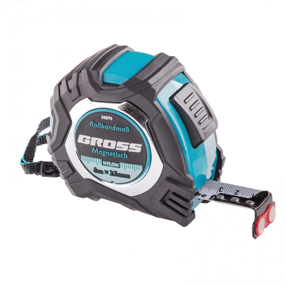 Рулетка Magnetisch,обрезин.корп.,магнит.зацеп, нейлон.покр., автоматич.фикс. 8м х25 мм Gross