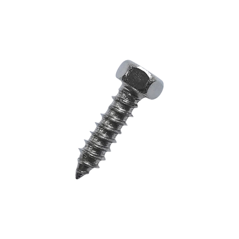 Самонарезающий винт с шестигранной головкой DIN 7976 из нержавеющей стали позиционируется как саморез для листового металла и используется для работы с мягкой сталью и алюминием. Его целесообразно использовать в тех случаях, когда требуется приложить более высокое усилие затягивания и допускается выступающая шляпка крепежа. Шуруп-саморез по металлу имеет стержень с полной мелкой резьбой, который при ввинчивании в низкоуглеродистую сталь и алюминиевые сплавы нарезает канавку в установочном отверстии без деформации собственной резьбы. Острие на конце избавляет от необходимости сверления стали толщиной до 1,0 мм. Внешний шестигранник обеспечивает увеличенный момент затяжки и исключает проскальзывание инструмента при установке. Изготовлен из немагнитной аустенитной стали А2, которая сочетает в себе высокую прочность и пластичность. Нержавеющие саморезы, выполненные из данного материала, рассчитаны на длительный срок службы без следов коррозии во влажной среде.