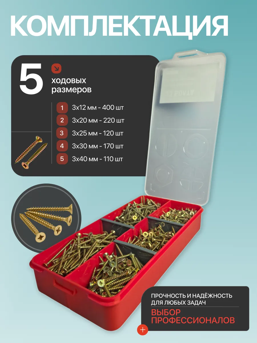 Саморезы по дереву М3 ЖЦ в органайзере НАБОР 1
