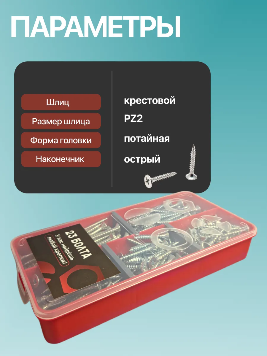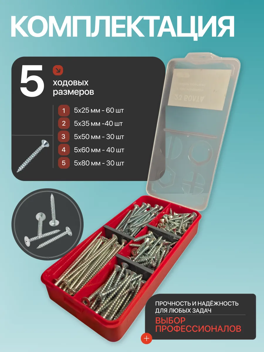 Саморезы потай по дереву БЦ М5 в органайзере НАБОР 1