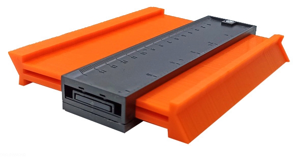Контурный шаблон позволяет точно скопировать контур любой сложной формы и перенести его на нужную поверхность. Прибор имеет простую конструкцию, состоит из линейки, внутрь которой вставлены тонкие подвижные наборные элементы. Поможет сделать правильную разметку, чтобы вырезать отверстие для трубы в керамической плитке. А также с помощью этого шаблона легко копируются и переносятся очертания любых фактурных, выпуклых, вогнутых и рельефных поверхностей.