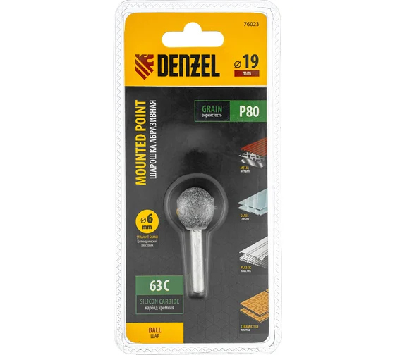 Шарошка абразивная для дрели, хвостовик 6 мм, шар 19 мм 63С Denzel