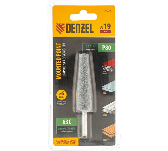 Шарошка абразивная для дрели ПШМ, хвостовик 6 мм, конус удлин. 19х60 мм 63С Denzel