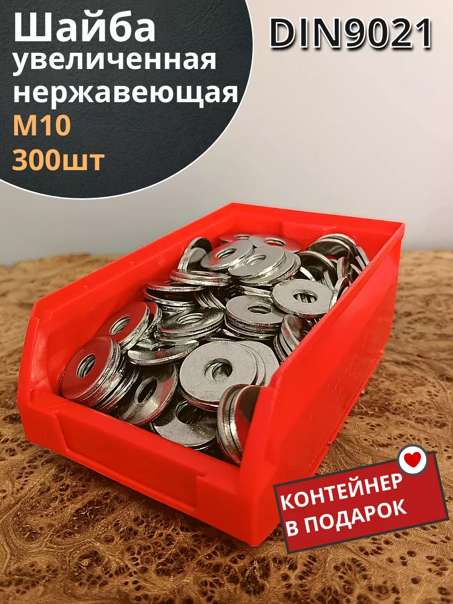 Шайба увеличенная нержавеющая М10 DIN 9021,300 шт. контейнер