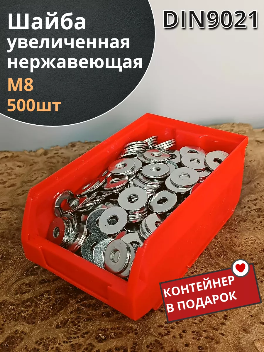 Шайба увеличенная нержавеющая М8 DIN 9021, 500 шт контейнер