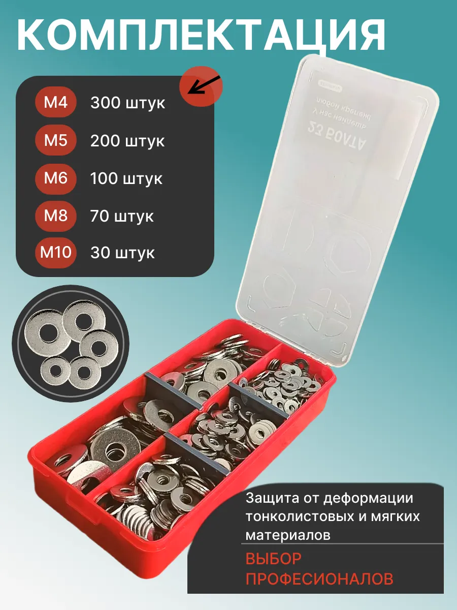 Шайбы увеличен. нержавеющая М4,5,6,8,10 органайзер НАБОР 1