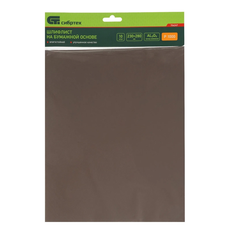 Шлифлист на бумажной основе Р 1000 230х280 мм, водостойкий, Сибртех