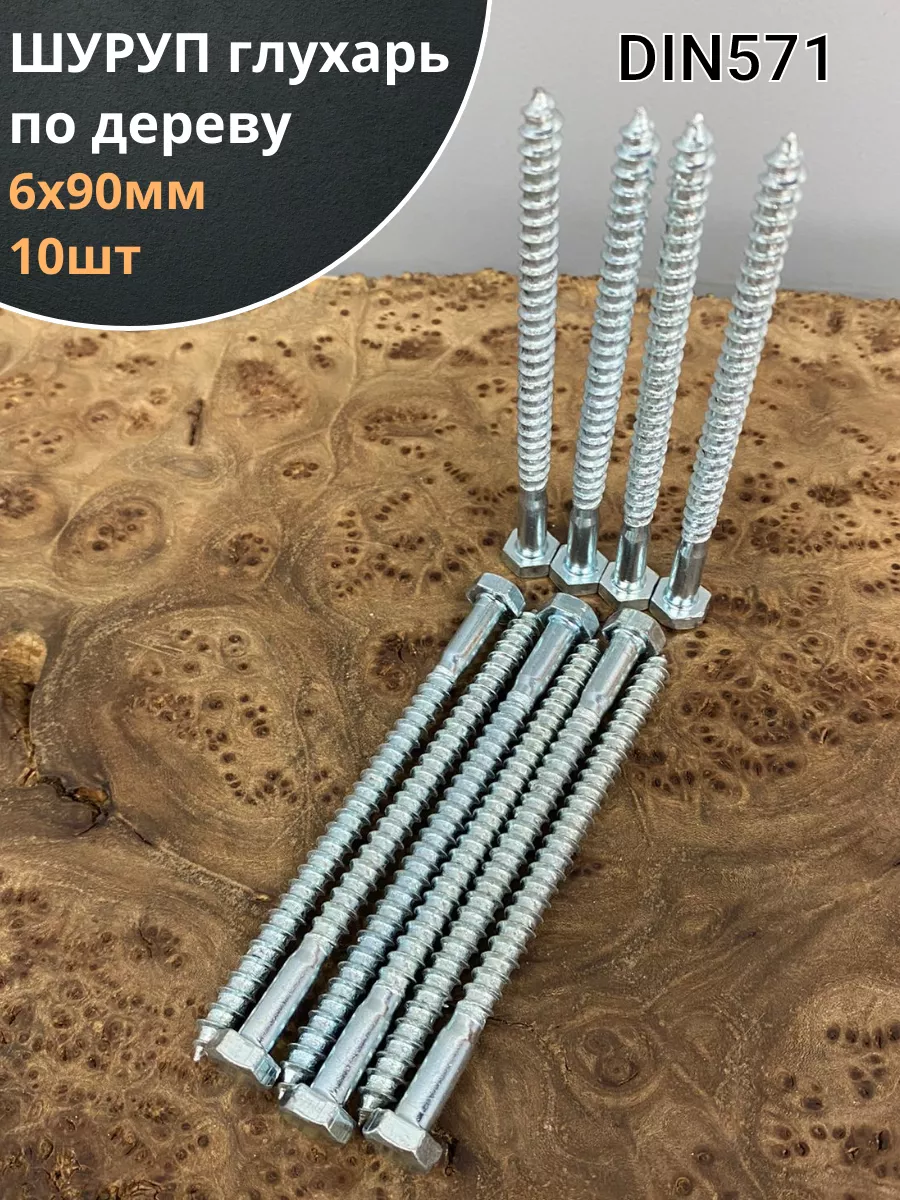 Шуруп глухарь по дереву 6х90, 10 шт.
