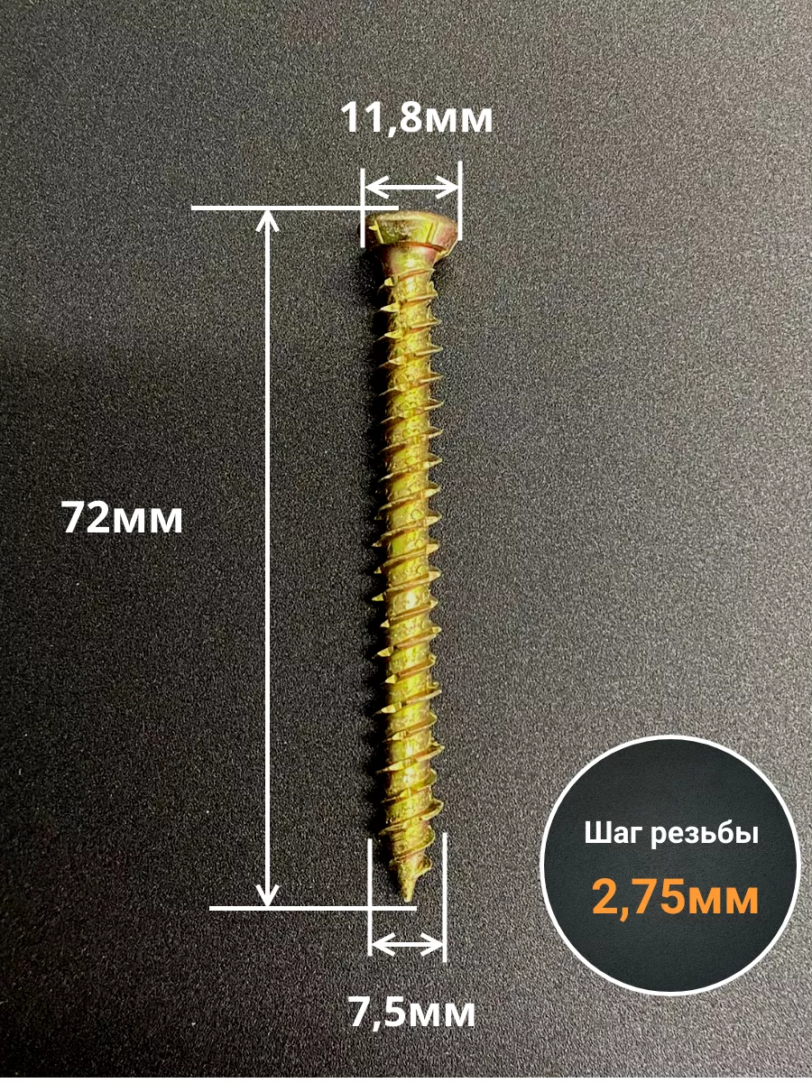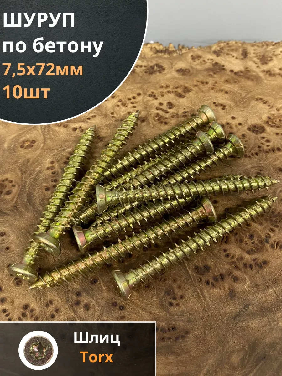 Шуруп — это металлический крепеж, представляющий собой стержень с головкой и острым наконечником. Универсальность проявляется в конструкции и области применения. Назначение шурупа — стягивать, скреплять между собой элементы: деревянных, древесностружечных и гипсокартонных плит, из тонкого листового металла. Саморез-шуруп "Бетон Нагель" с потайной головкой, с насечками и шлицем TORX. Шуруп широко используется в строительстве и при проведении ремонтно-отделочных работ. Часто применяются для крепления оконных рам и дверных коробок. Данный саморез изготавливается из стали и потом покрывается желтым цинком. По всей длине стержня расположена острая попеременная резьба. Шуруп имеет острый наконечник и потайную шляпку. Для работы с данной моделью шурупа необходима бита TORX. Материал основания: бетон, природный камень, кирпич.