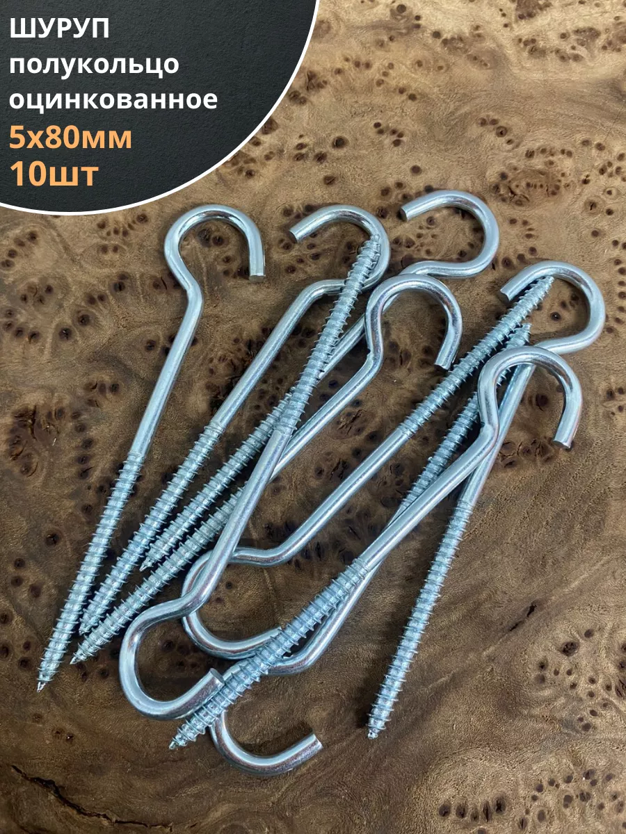 Шуруп-полукольцо, 5х80 , оцинкованное 10 шт.
