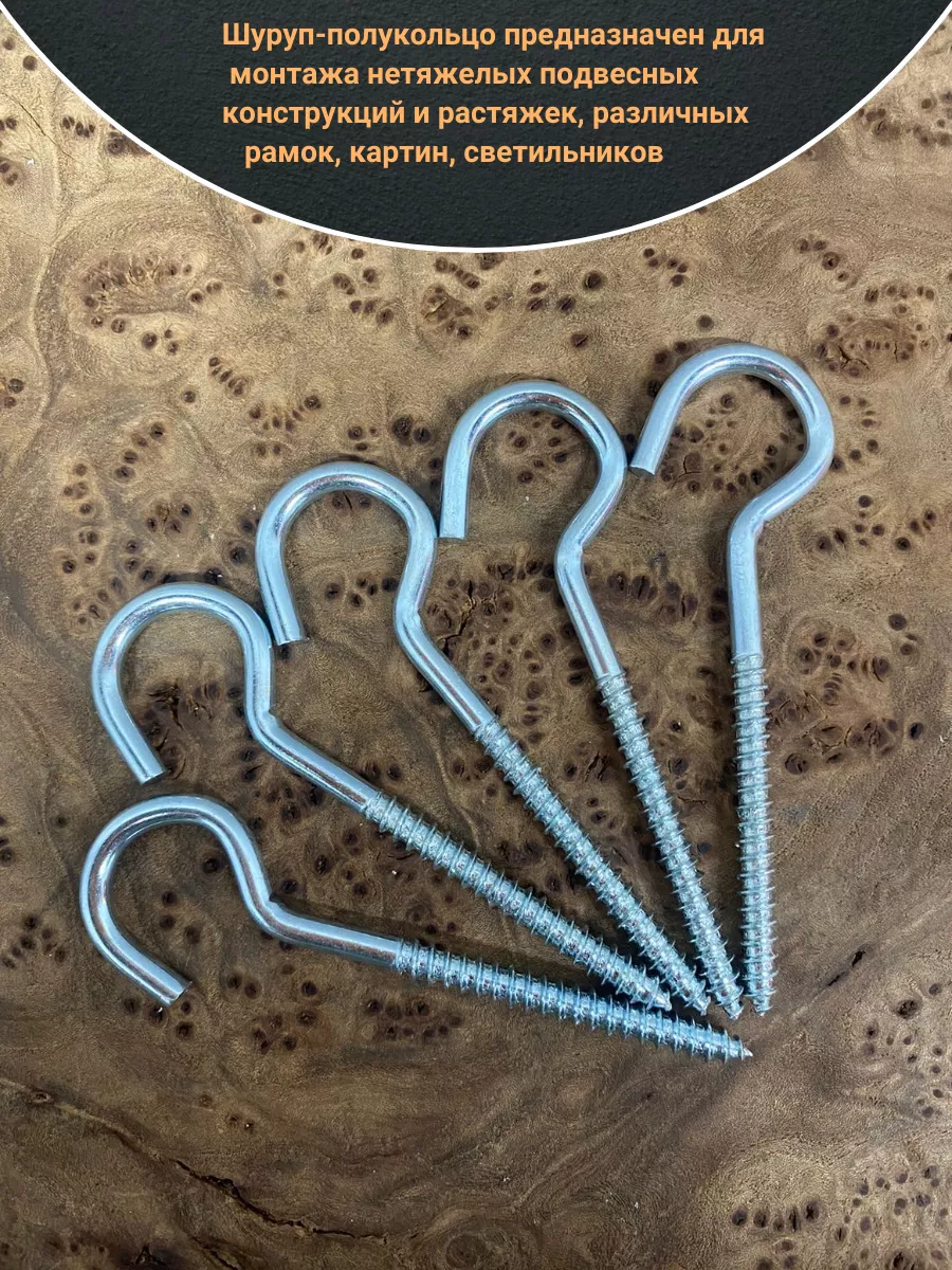 Шуруп-полукольцо, 6х60 , оцинкованное 10 шт.