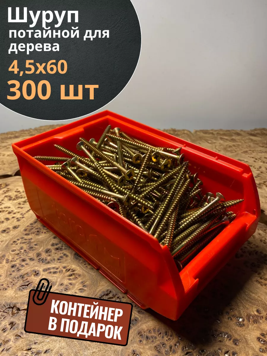 Шуруп потайной для дерева 4,5х60 ЖЦ, в контейнере, 300 шт.