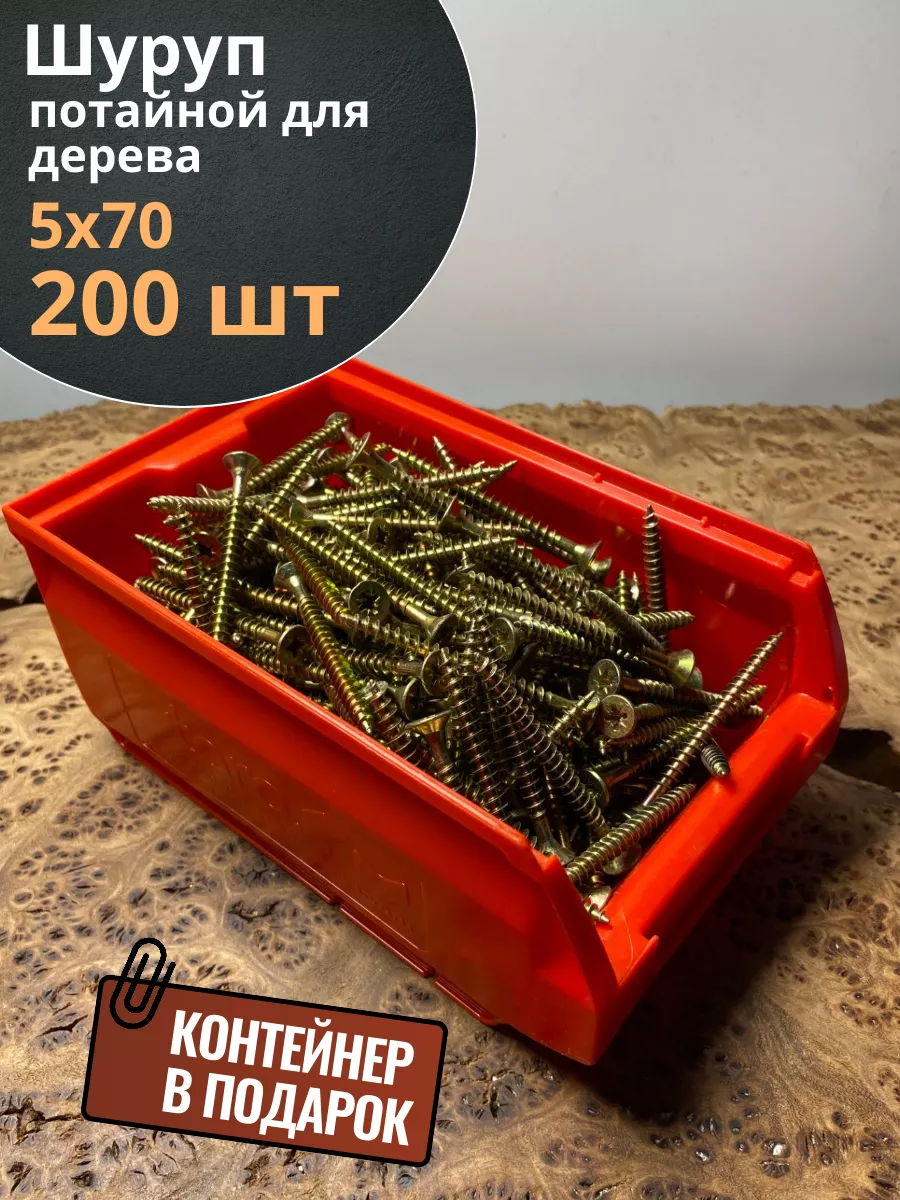 Шуруп потайной для дерева 5х70 ЖЦ, в контейнере, 200 шт.