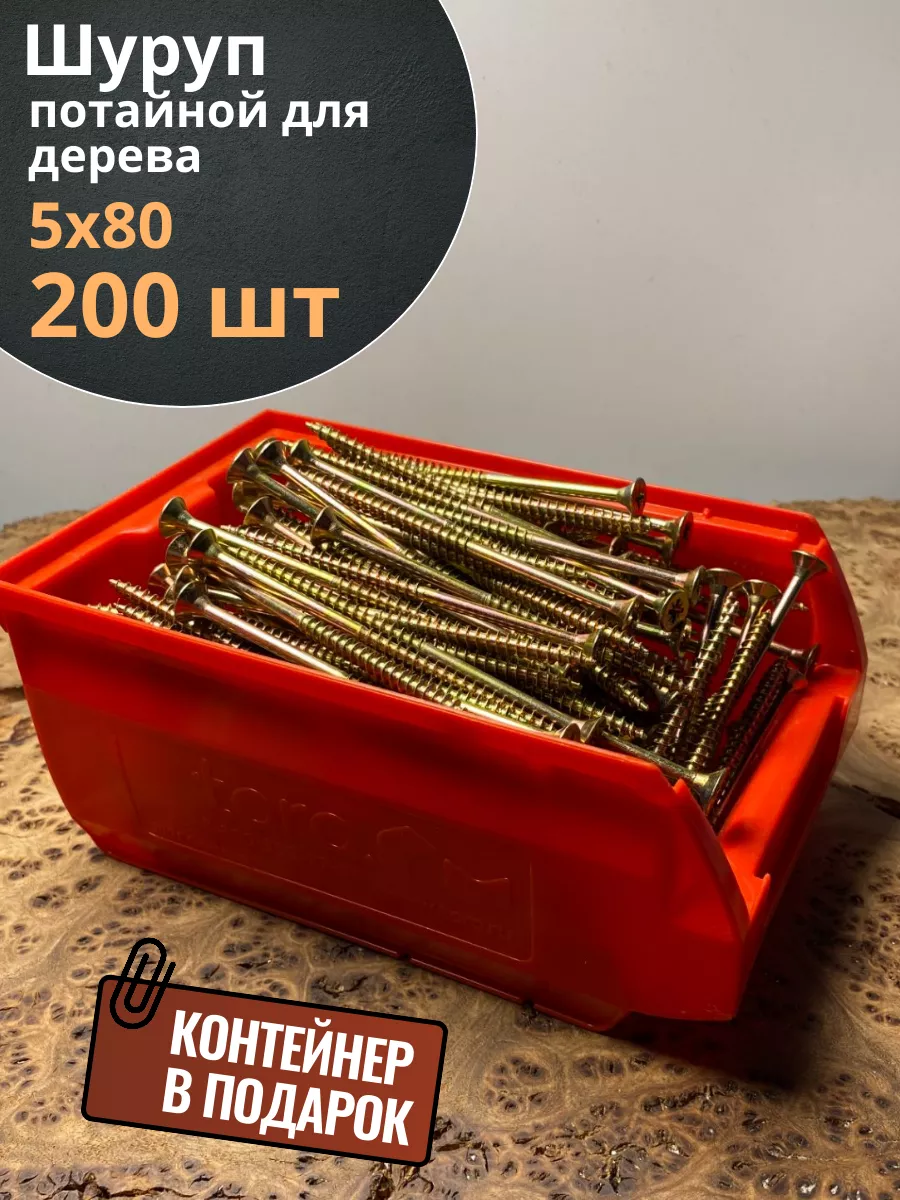 Шуруп потайной для дерева 5х80 ЖЦ, в контейнере, 200 шт.