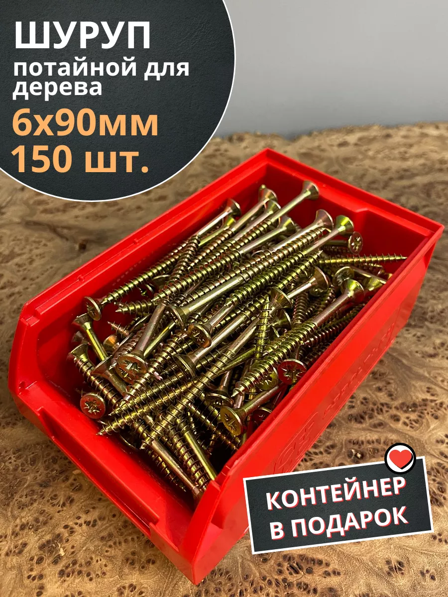 Шуруп потайной для дерева 6х90 ЖЦ, в контейнере, 150 шт.