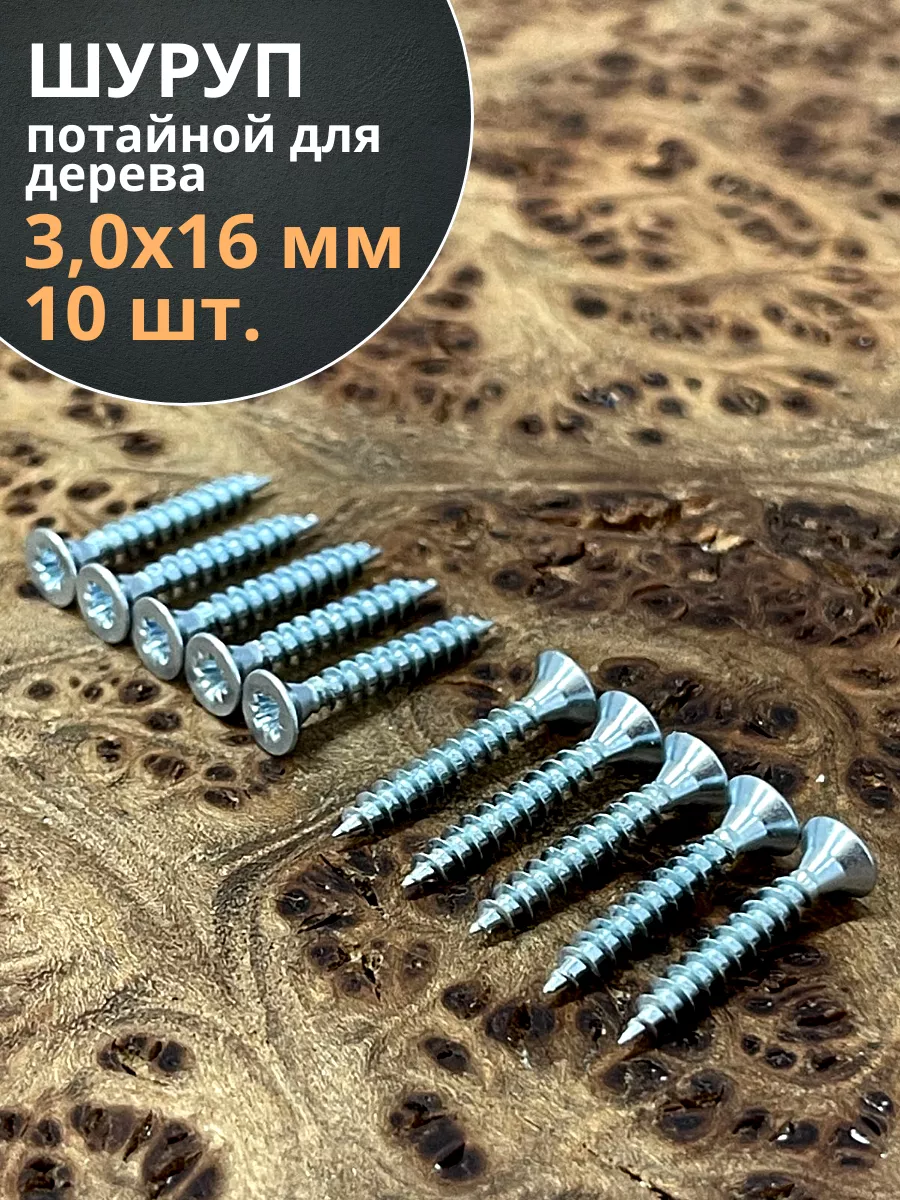 Шуруп потайной для дерева Б 3,0х16 БЦ, 10 шт.