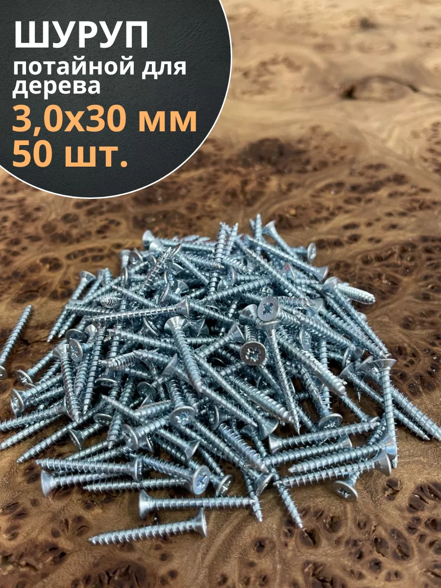 Шуруп потайной для дерева Б 3,0х30 БЦ, 50 шт.