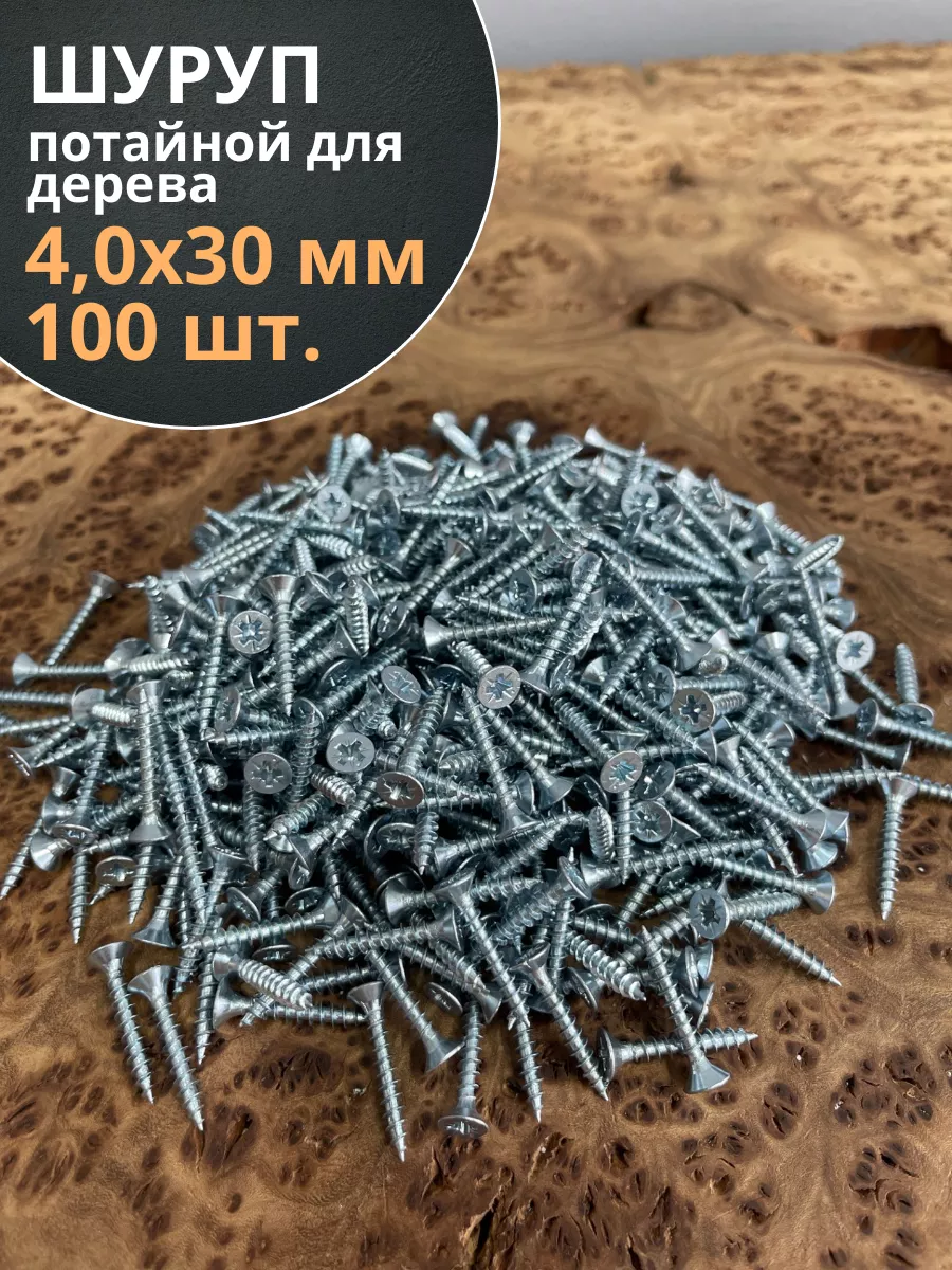 Шуруп потайной для дерева Б 4,0х30 БЦ, 100 шт.
