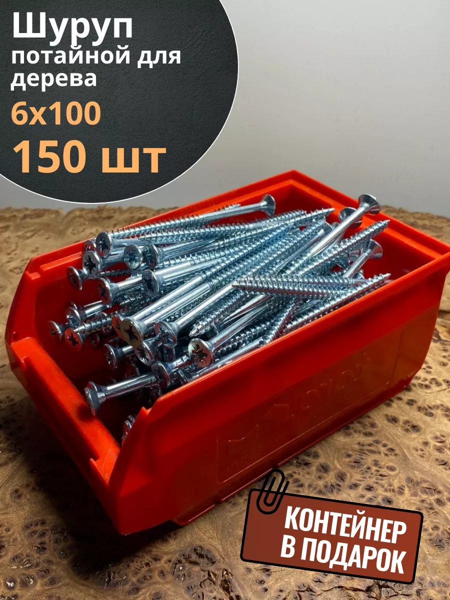 Шуруп потайной для дерева Б 6х100 БЦ,в контейнере, 150 шт.