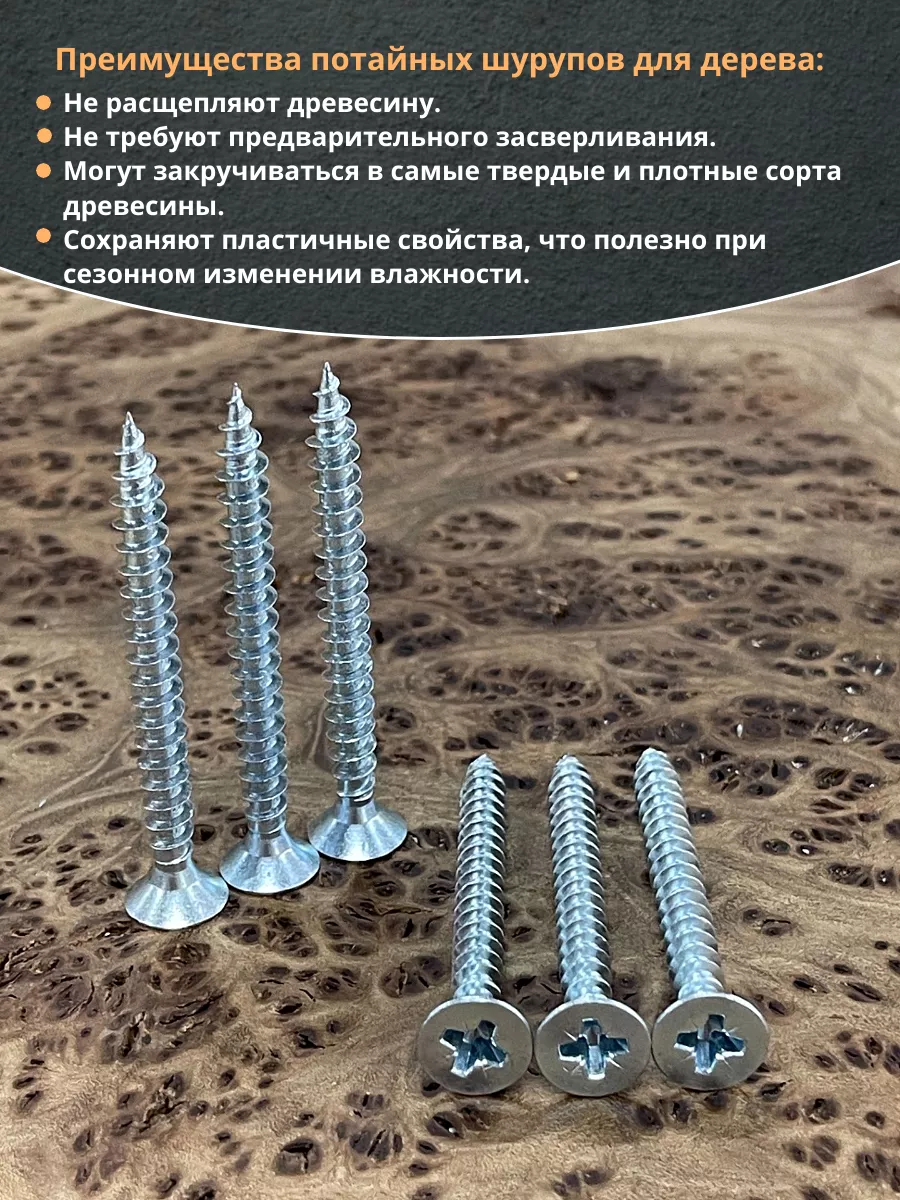 Шуруп потайной для дерева Б 6,0х60 БЦ, 100 шт.