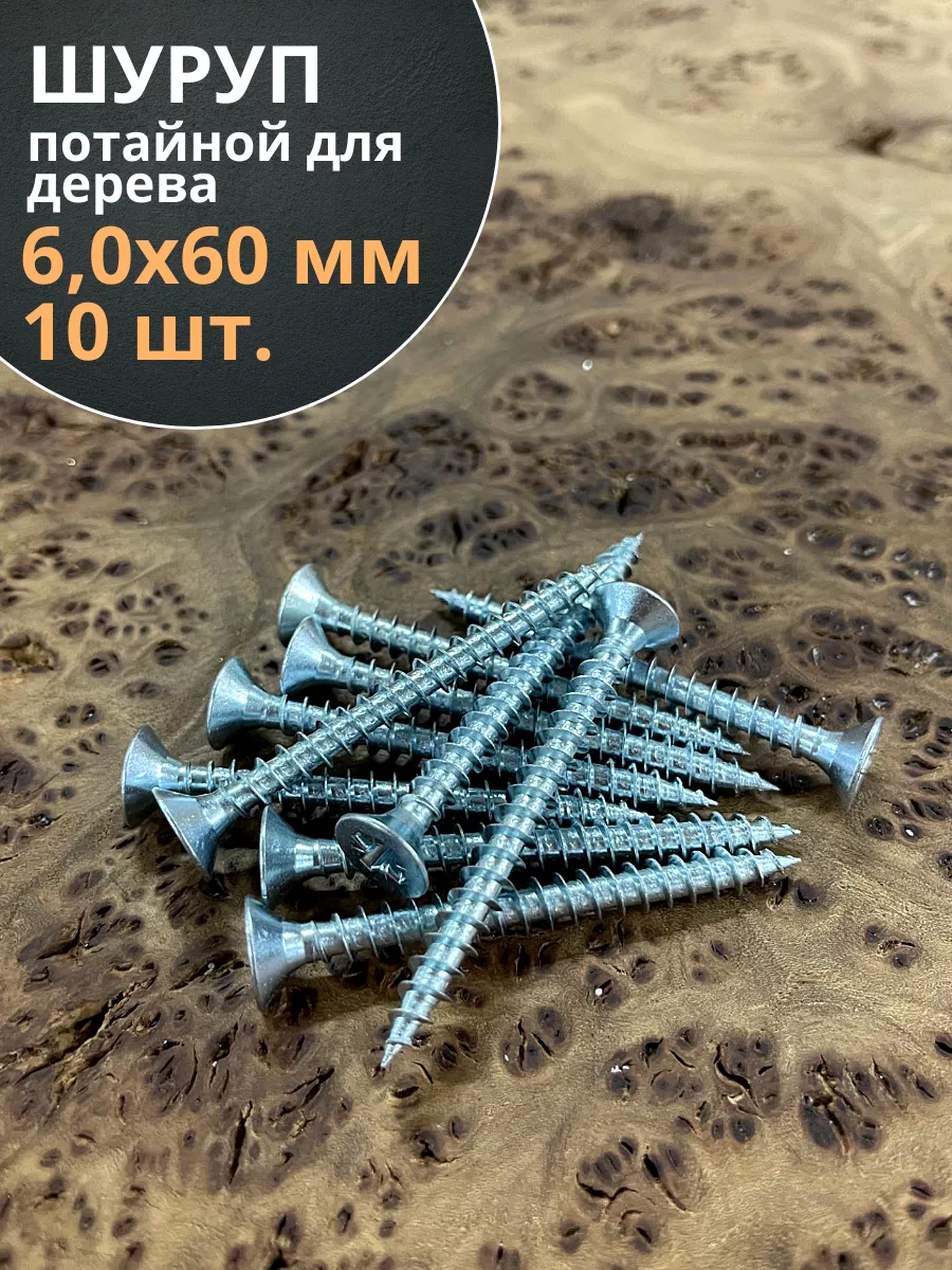 Шуруп потайной для дерева Б 6,0х60 БЦ, 10 шт.