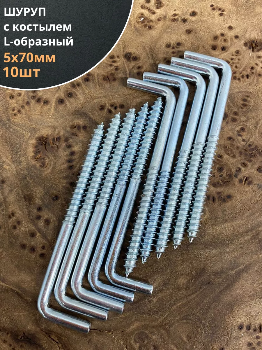 Шуруп с костылем L-образный 5х70, 10 шт.