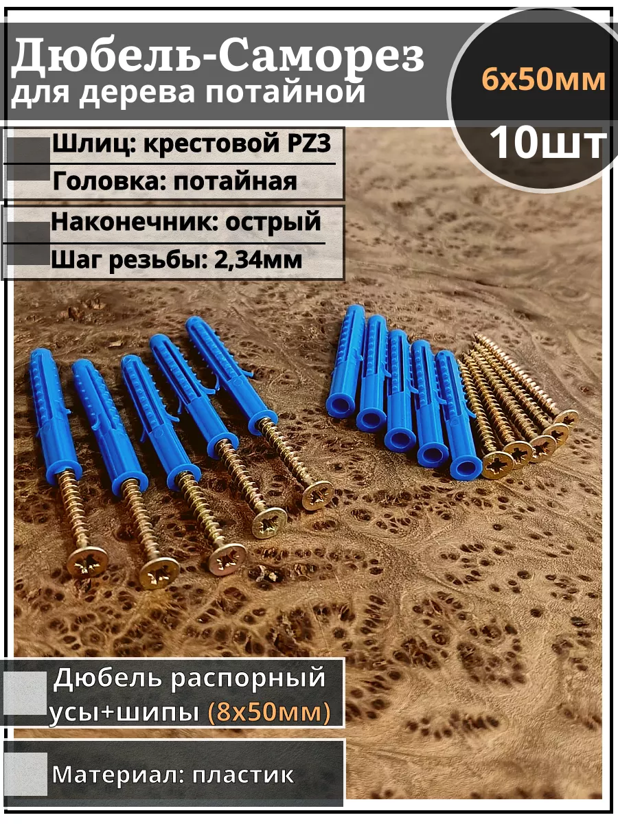 | Шуруп саморез 6х50 мм ЖЦ с дюбелем 8х50, 10 шт. | B04006005062G07/B23300805003000ф10 | 1 шт. |