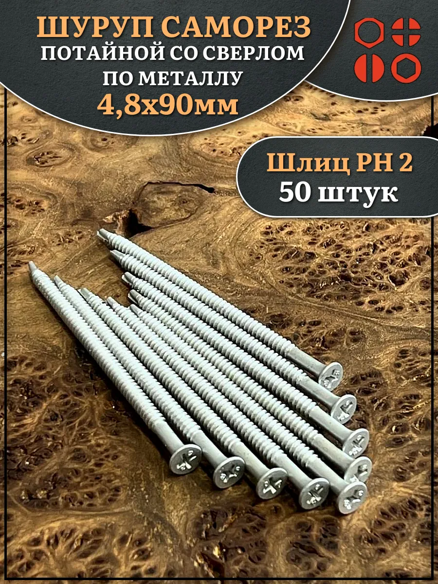 | Шуруп саморез потай со сверлом 4,8х90 мм, 50 шт. | 13-0935ф50 | 1 шт. |