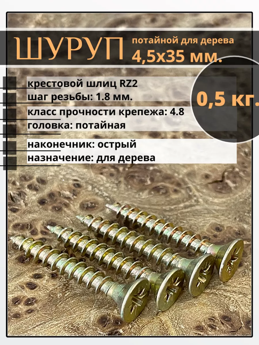 Шуруп саморез потайной для дерева 4,5х35 ЖЦ, 0,5 кг.