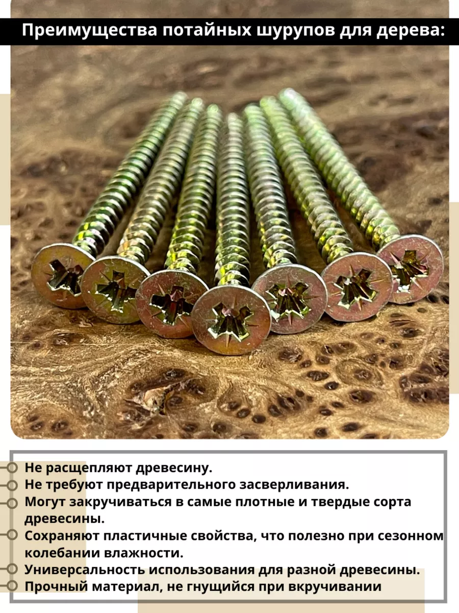 Шуруп саморез потайной для дерева 4,5х50 мм, желтый цинк, 1 кг.