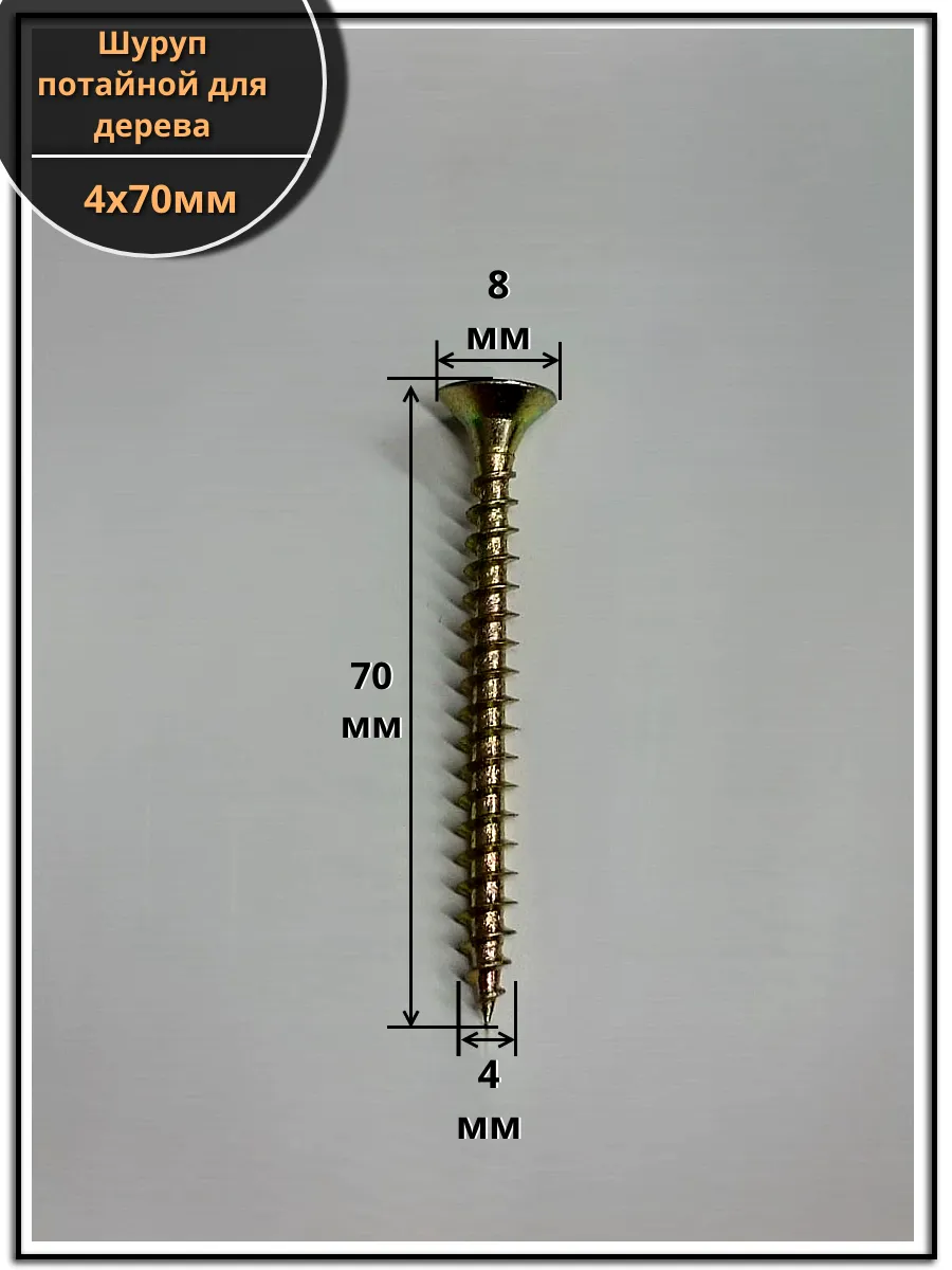 Шуруп саморез потайной для дерева 4х70 мм, желтый цинк, 1 кг.