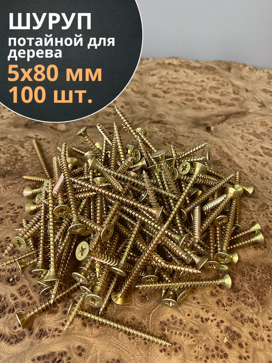 Шуруп саморез потайной для дерева 5х80 ЖЦ, 100 шт.