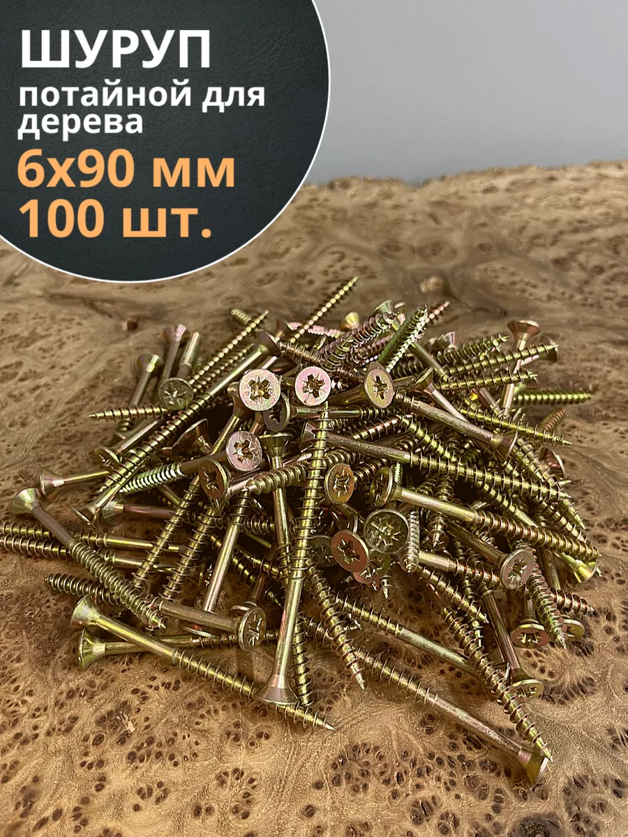 Шуруп саморез потайной для дерева 6х90 ЖЦ, 100 шт.