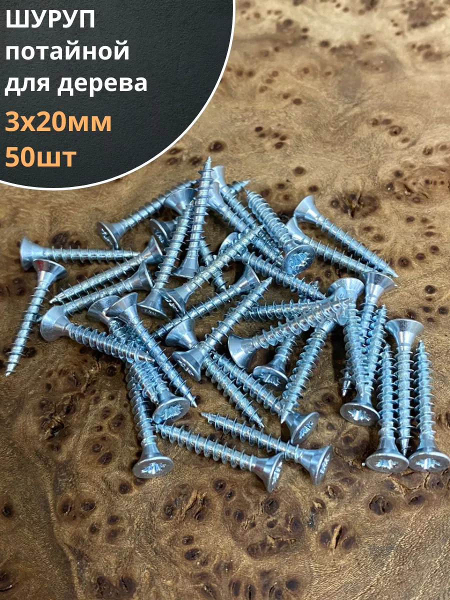 Шуруп саморез потайной для дерева Б 3х20 БЦ, 50 шт.